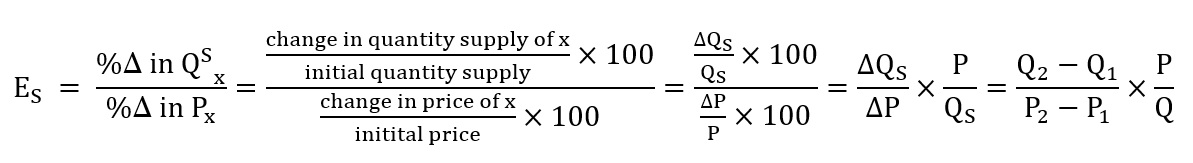 ES berarti seberapa kuat reaksi produsen jika terjadi kenaikan harga produk. Jadi, ES adalah reaksi jumlah penawaran terhadap harga.Secara simbolis,