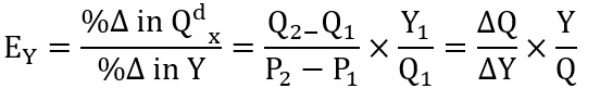 E_P=\frac{\%Δ in Q^d_x}{\%ΔinP_x}=\frac{ΔQ}{ΔP}X\frac{P}{Q}