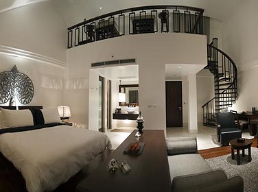 duplex dua kamar hotel yang berada pada dua lantai dan dihubungkan dengan tangga.