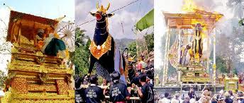 Upacara Ngaben adalah upacara pembakaran mayat yang dilaksanakan oleh umat beragama Hindu di Bali. Upacara Ngaben diadakan jika ada orang yang meninggal dan biasanya diselenggarakan oleh anggota keluarga yang meninggal. Makna dari upacara Ngaben adalah untuk mengembalikan roh leluhur (roh orang yang sudah meninggal tersebut) ke tempat asalnya.